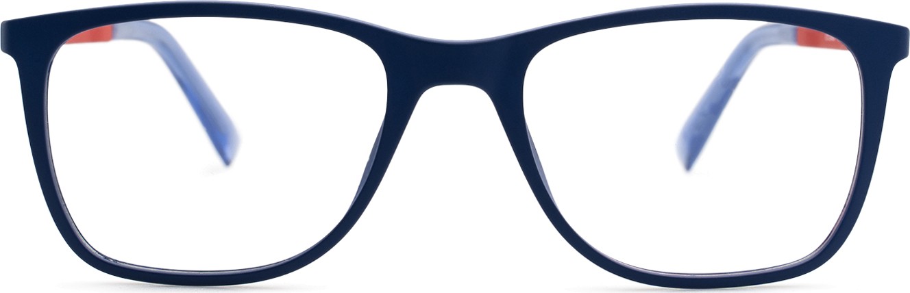 - A cor azul da armação combina perfeitamente com um tom de pele claro e um cabelo castanho claro, preto ou loiro claro.