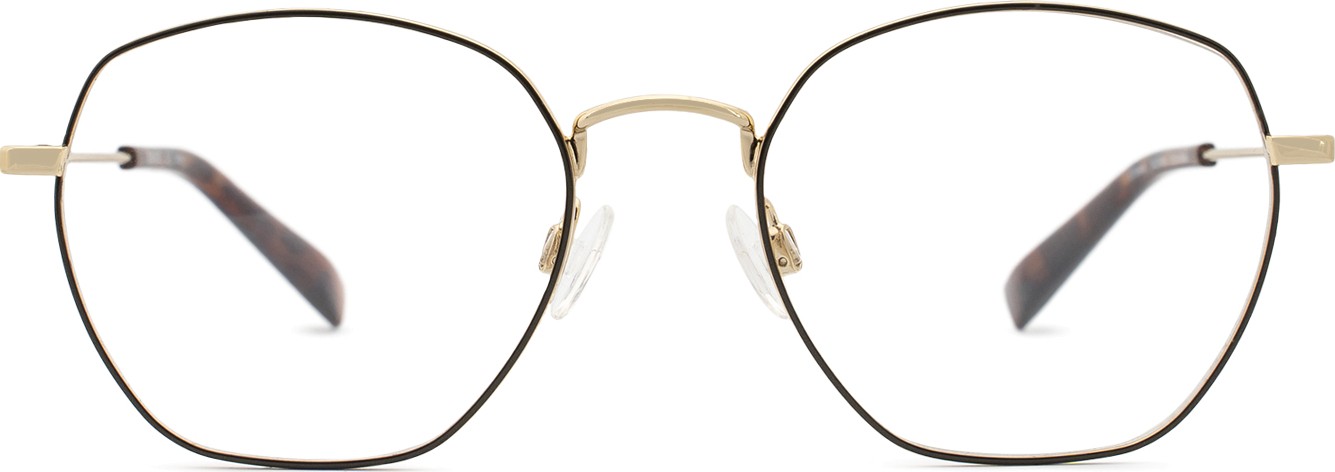 - A cor dourada da armação combina perfeitamente com um tom de pele escuro e um cabelo castanho escuro.