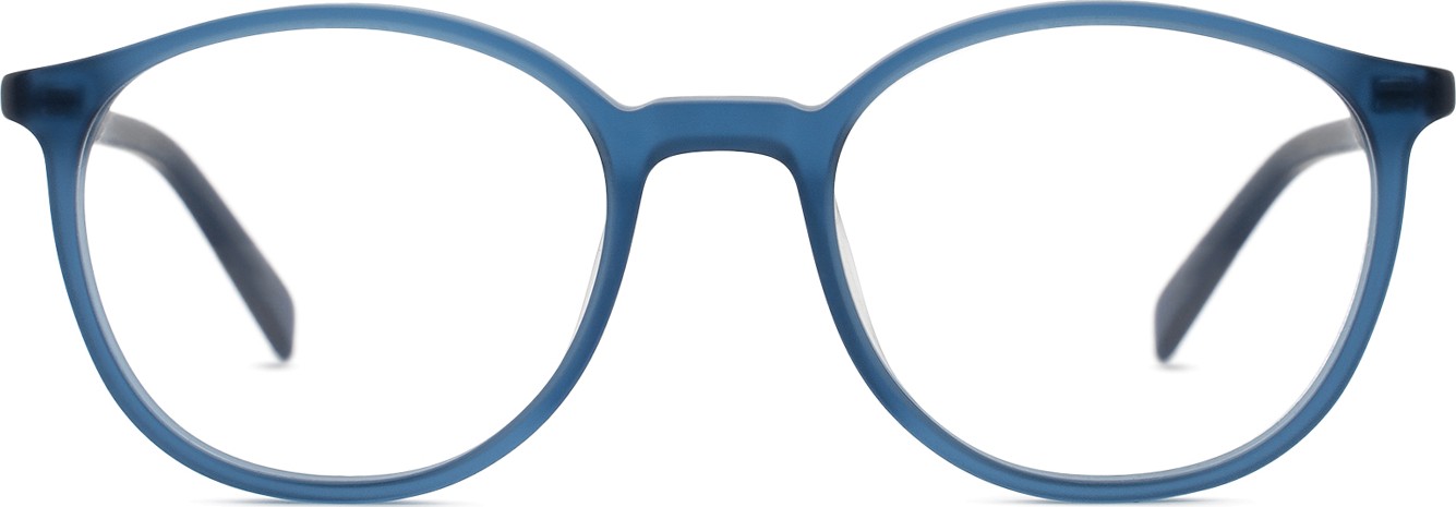- A cor azul da armação combina perfeitamente com um tom de pele claro e um cabelo castanho claro, preto ou loiro claro.