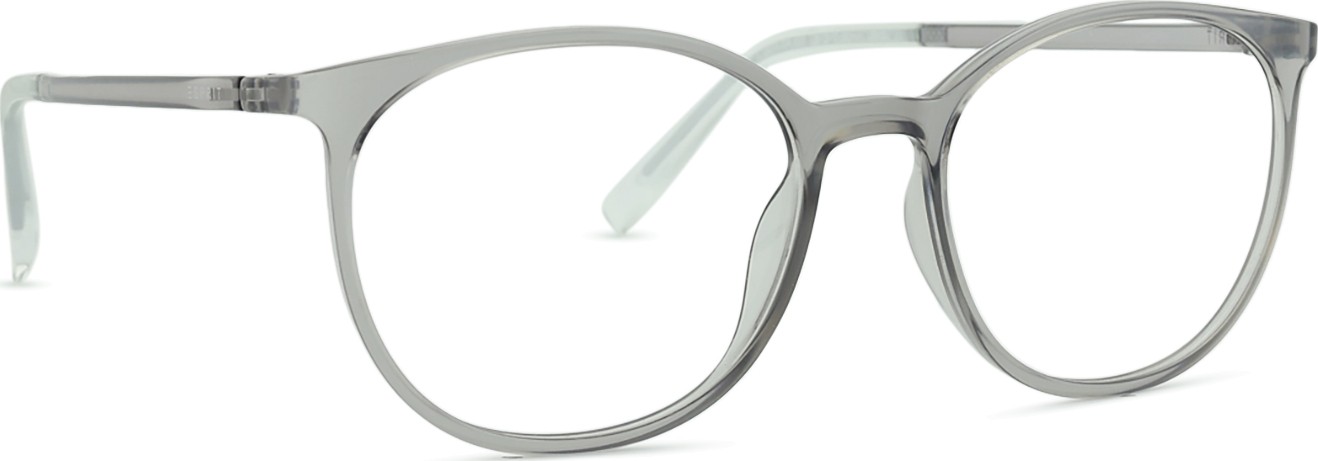 A cor cinzenta da armação combina perfeitamente com um tom de pele claro e um cabelo vermelho, cinzento, branco ou loiro escuro.