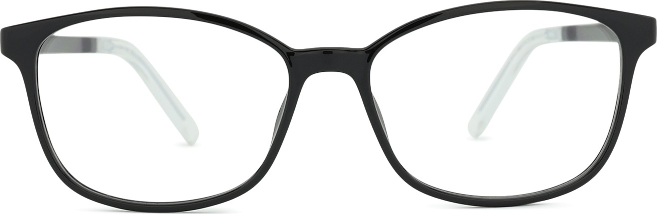 A cor preta da armação combina perfeitamente com um tom de pele claro e um cabelo loiro claro, castanho claro ou preto.