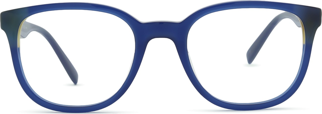 - A cor azul da armação combina perfeitamente com um tom de pele claro e um cabelo castanho claro, preto ou loiro claro.