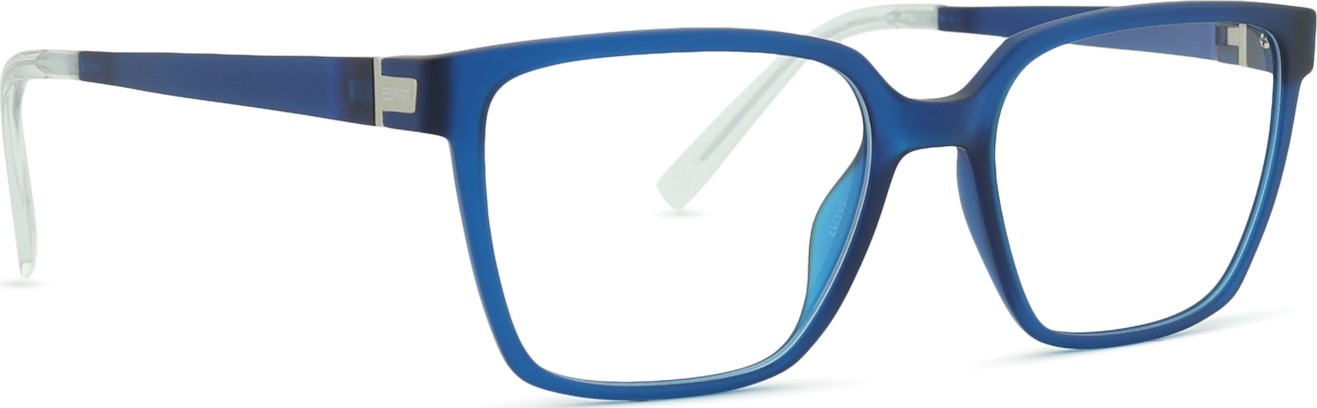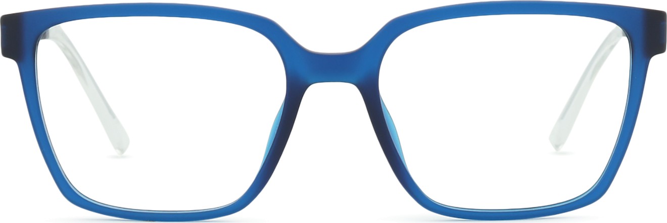 - A cor azul da armação combina perfeitamente com um tom de pele claro e um cabelo castanho claro, preto ou loiro claro.