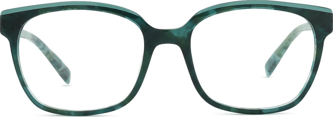 A cor verde da armação combina perfeitamente com um tom de pele claro e um cabelo castanho escuro, preto ou ruivo.