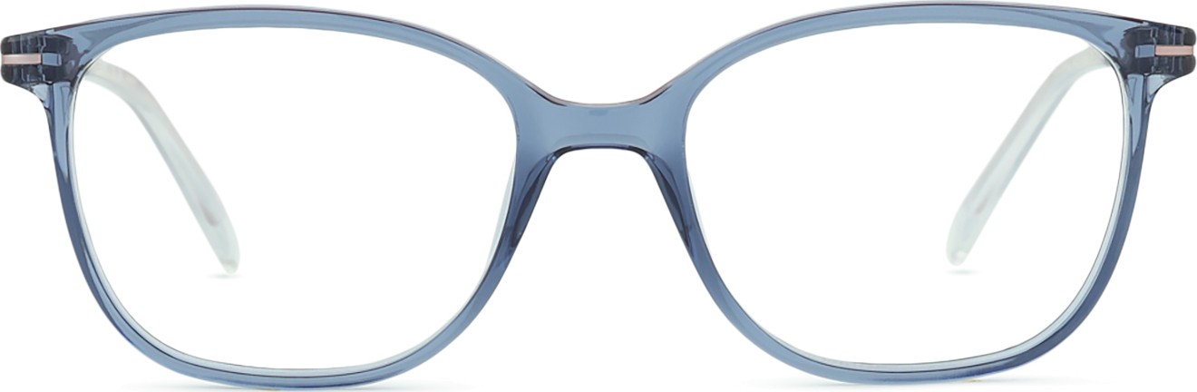 - A cor azul da armação combina perfeitamente com um tom de pele claro e um cabelo castanho claro, preto ou loiro claro.