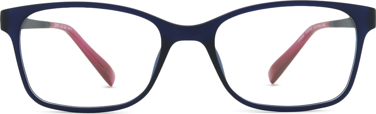 A cor azul da armação combina perfeitamente com um tom de pele claro e um cabelo castanho claro, preto ou loiro claro.