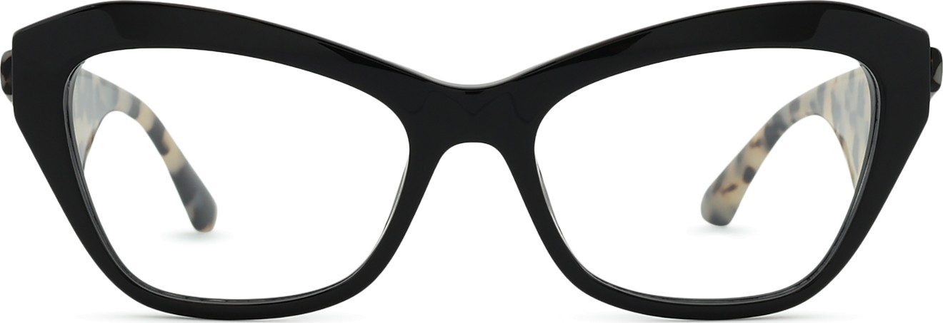 A cor preta da armação combina perfeitamente com um tom de pele claro e um cabelo loiro claro, castanho claro ou preto.