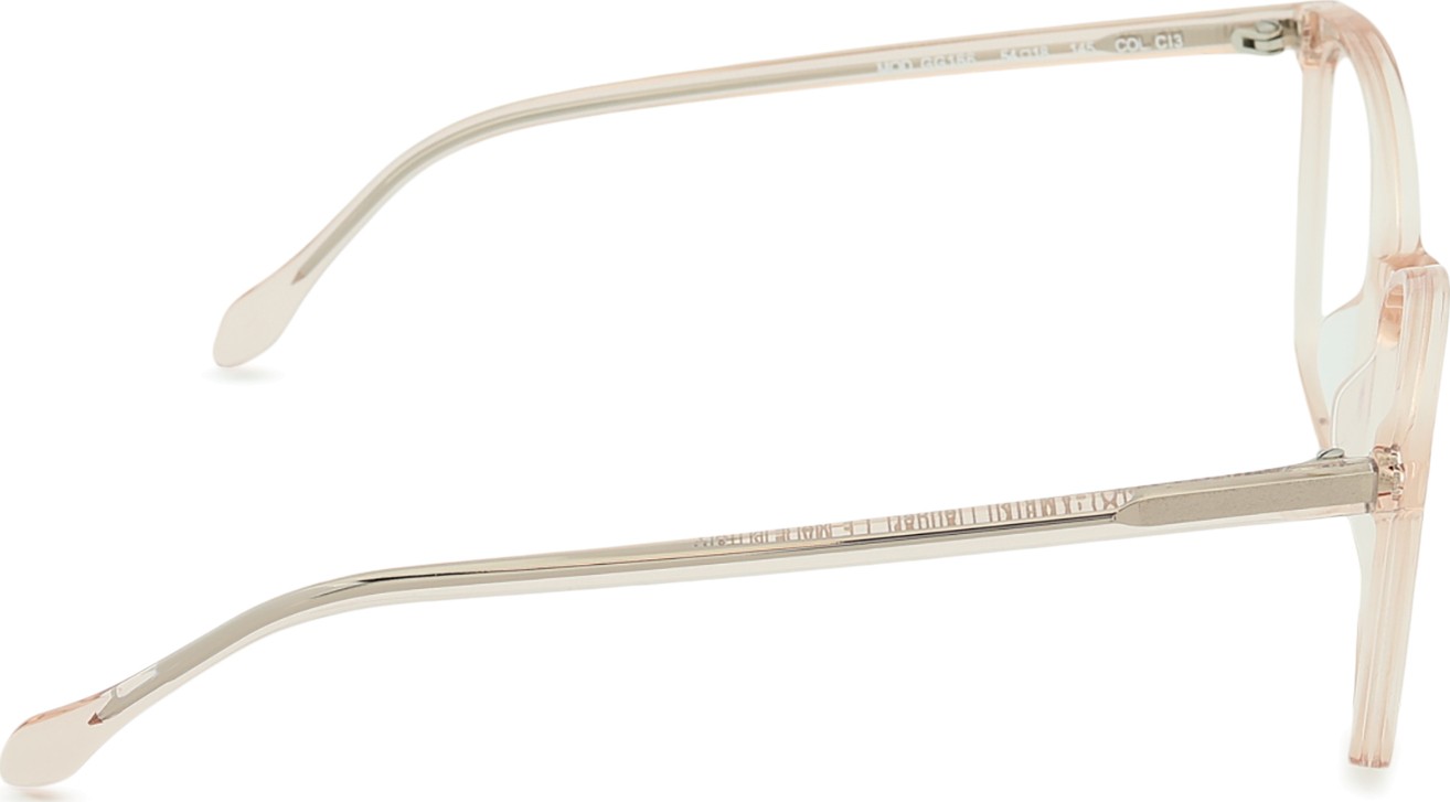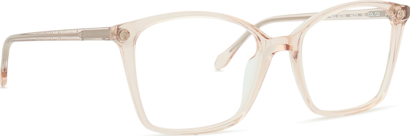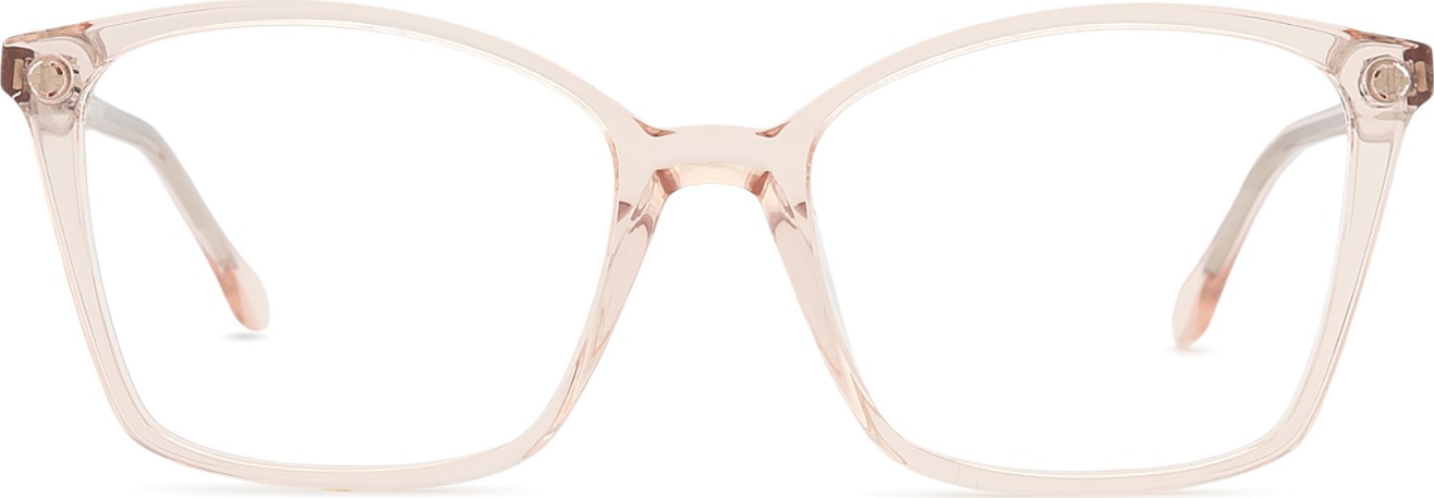 A cor rosa da armação combina perfeitamente com um tom de pele claro e um cabelo castanho ou loiro claro.