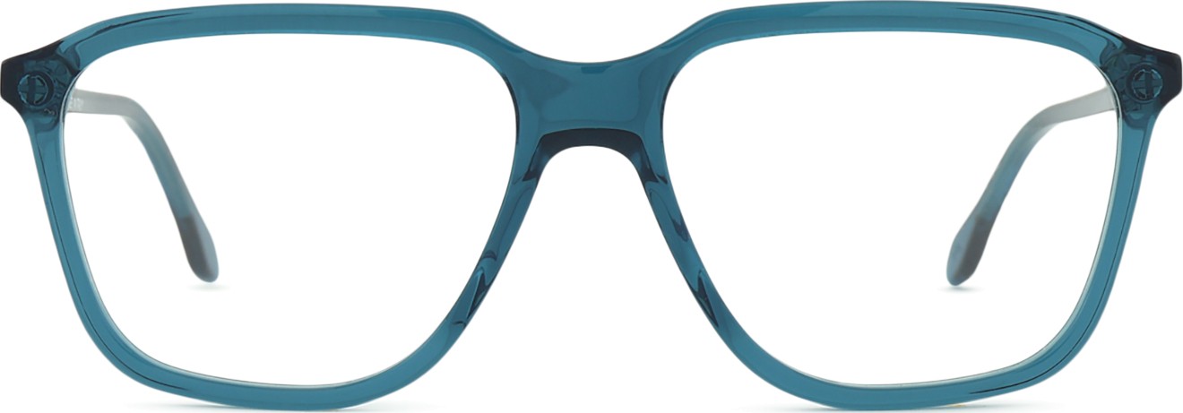 A cor azul da armação combina perfeitamente com um tom de pele claro e um cabelo castanho claro, preto ou loiro claro.