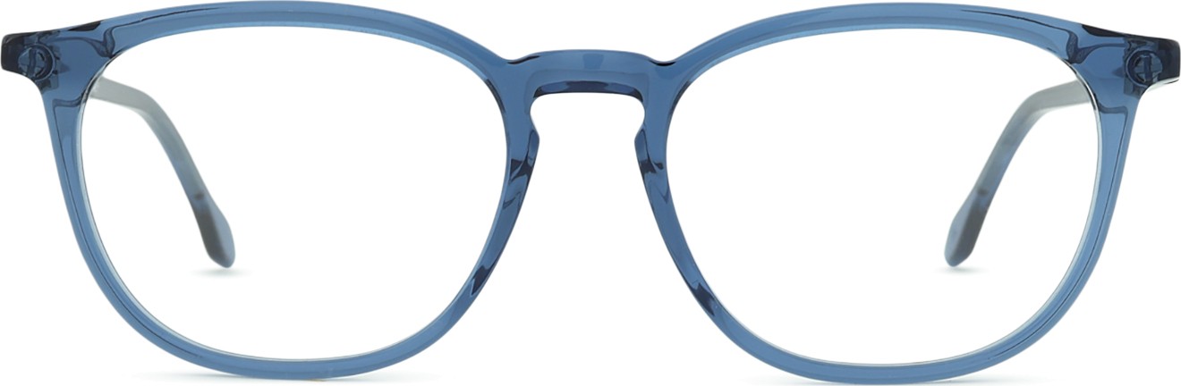 - A cor azul da armação combina perfeitamente com um tom de pele claro e um cabelo castanho claro, preto ou loiro claro.