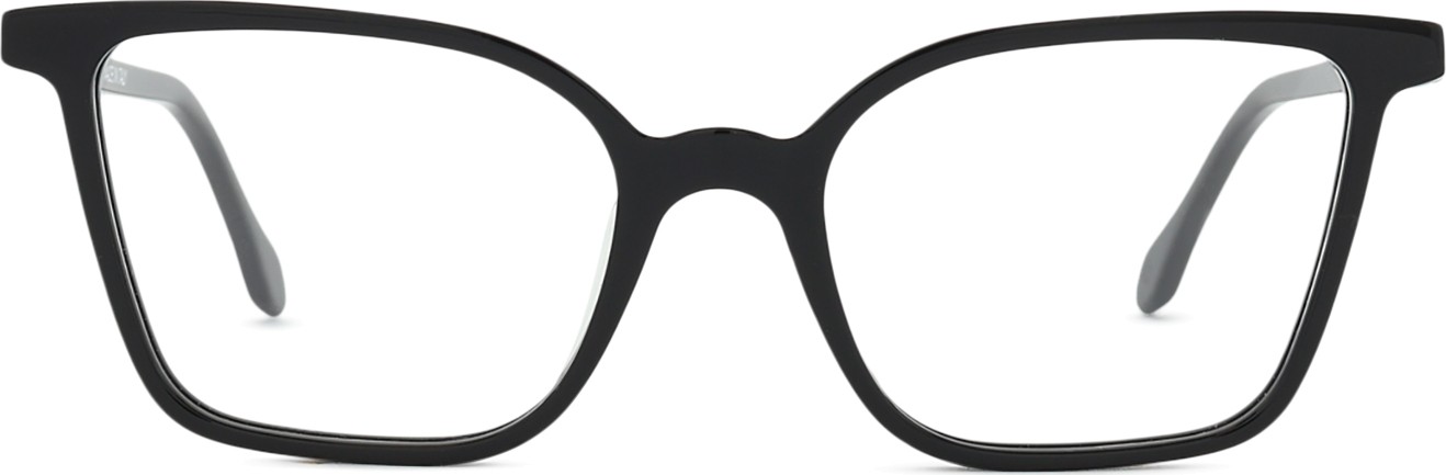 A cor preta da armação combina perfeitamente com um tom de pele claro e um cabelo loiro claro, castanho claro ou preto.