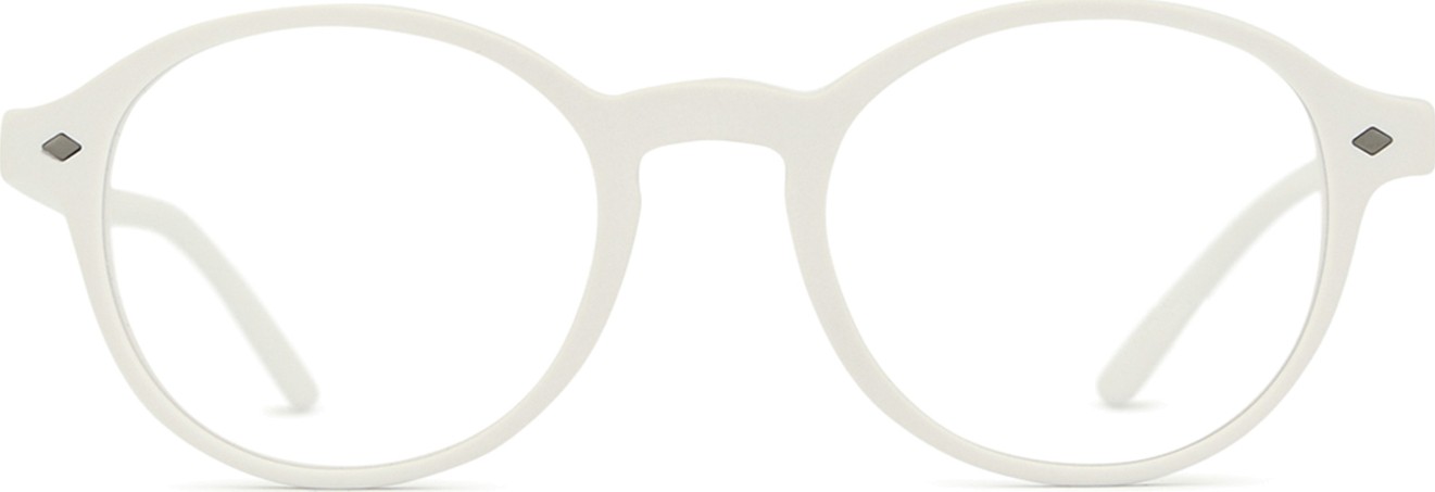 - A cor branca da armação combina perfeitamente com um tom de pele claro e um cabelo preto, castanho claro e loiro claro.