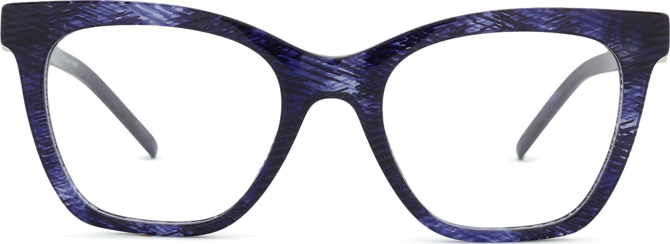 - A cor azul da armação combina perfeitamente com um tom de pele claro e um cabelo castanho claro, preto ou loiro claro.