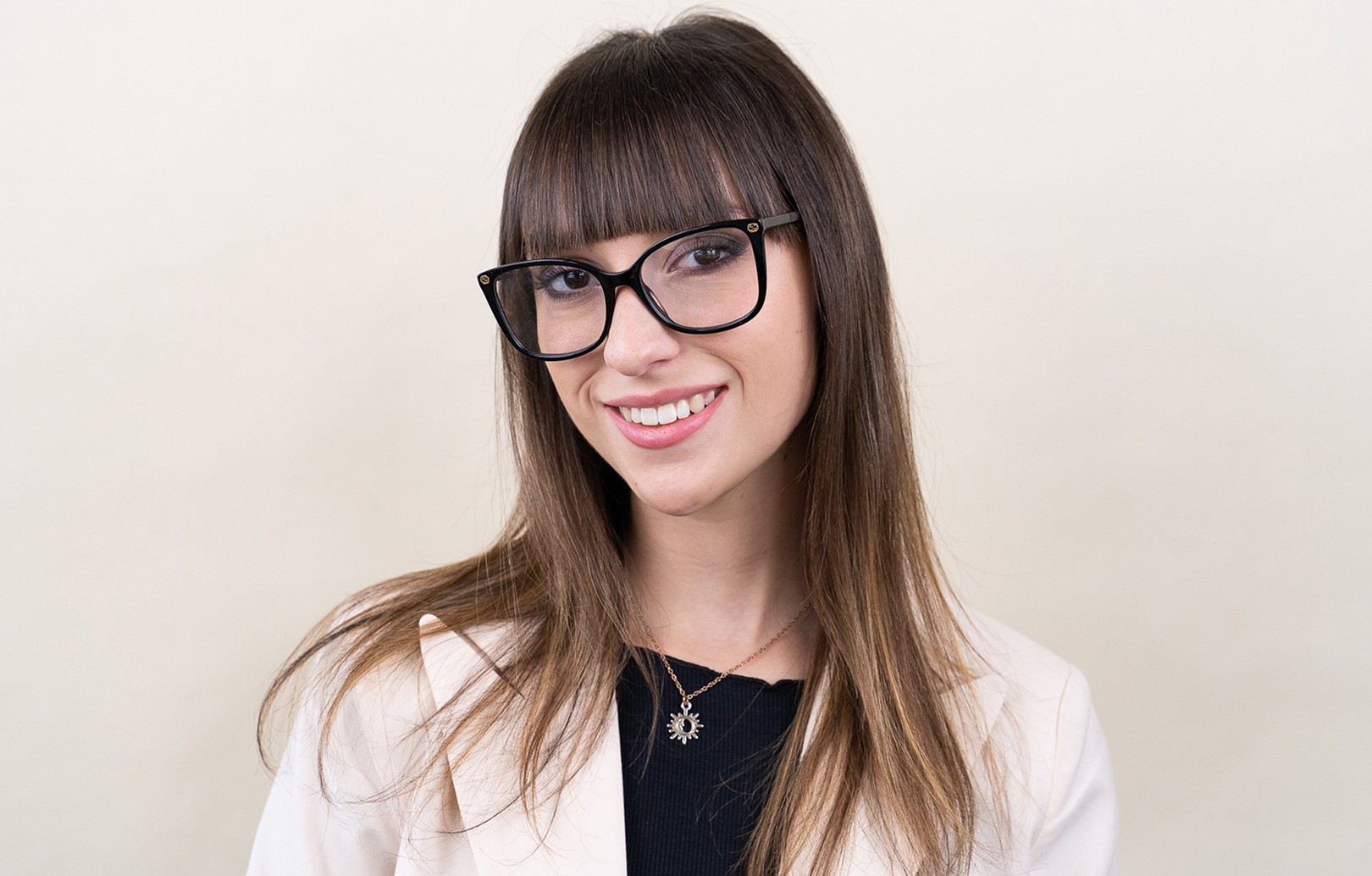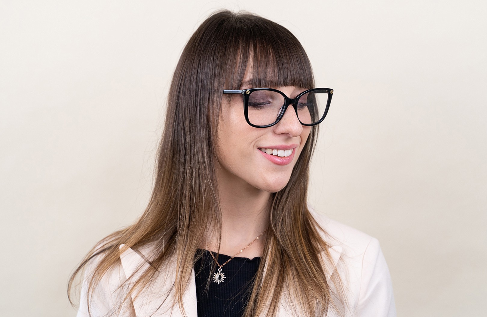 - A cor preta da armação combina perfeitamente com um tom de pele claro e um cabelo loiro claro, castanho claro ou preto.