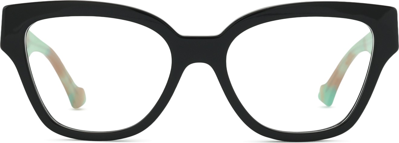 A cor preta da armação combina perfeitamente com um tom de pele claro e um cabelo loiro claro, castanho claro ou preto.