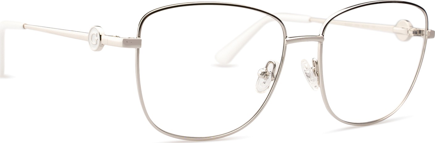 - A cor prateada da armação combina perfeitamente com um tom de pele claro e um cabelo vermelho, cinzento, branco ou loiro escuro.