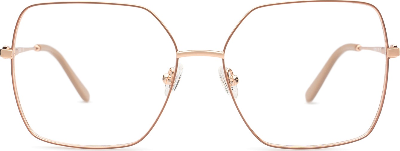 - A cor rosa da armação combina perfeitamente com um tom de pele claro e um cabelo castanho ou loiro claro.