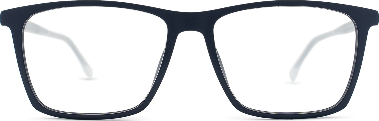 - A cor azul da armação combina perfeitamente com um tom de pele claro e um cabelo castanho claro, preto ou loiro claro.