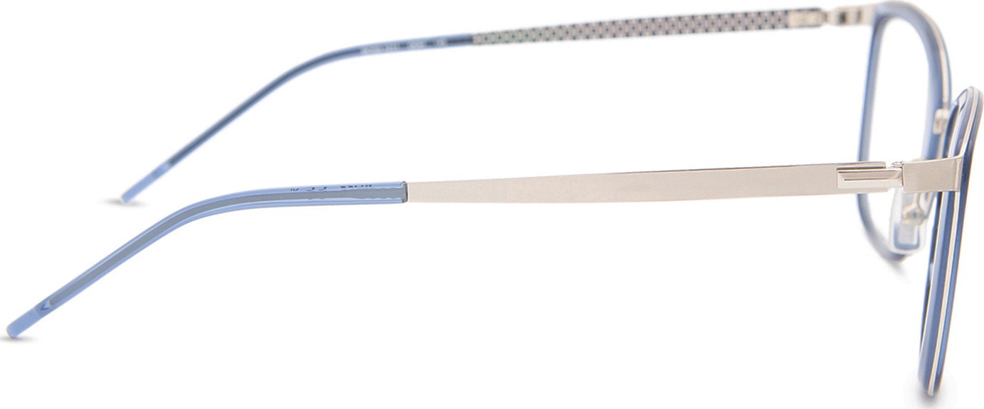 - A cor azul da armação combina perfeitamente com um tom de pele claro e um cabelo castanho claro, preto ou loiro claro.