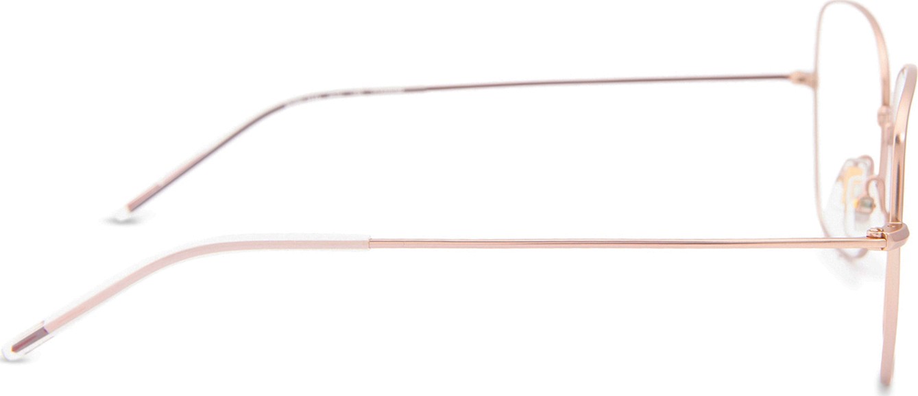 A cor rosa da armação combina perfeitamente com um tom de pele claro e um cabelo castanho ou loiro claro.