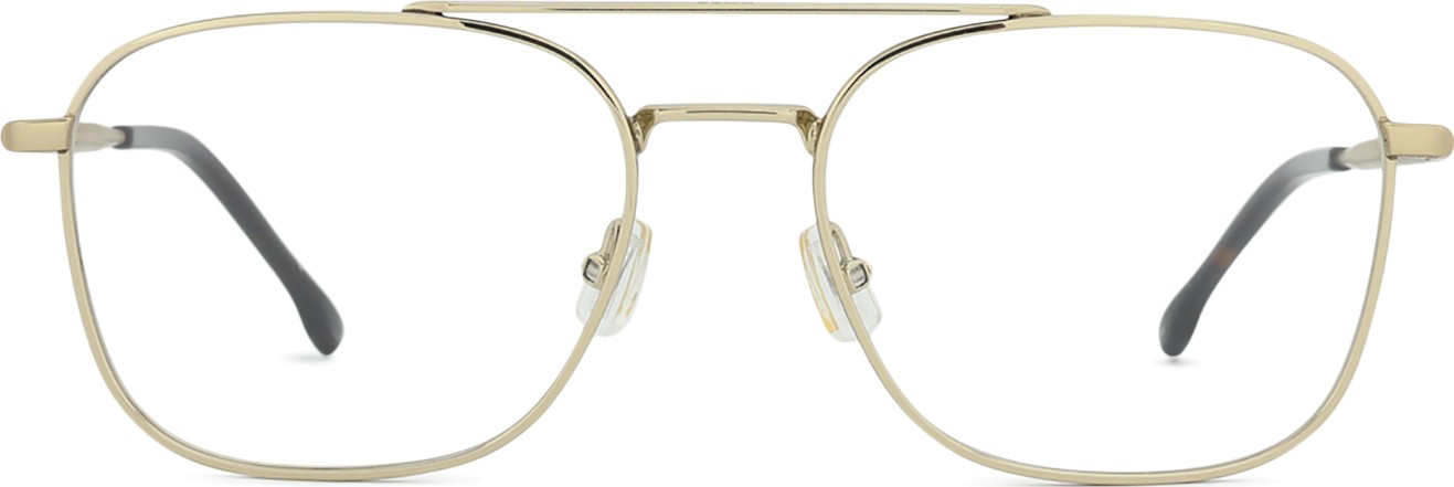 - A cor dourada da armação combina perfeitamente com um tom de pele escuro e um cabelo castanho escuro.