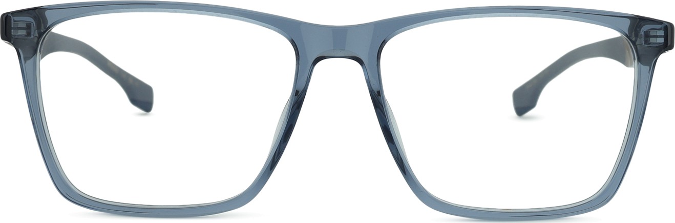 A cor azul da armação combina perfeitamente com um tom de pele claro e um cabelo castanho claro, preto ou loiro claro.