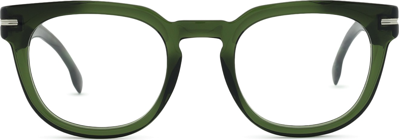 - A cor verde da armação combina perfeitamente com um tom de pele claro e um cabelo castanho escuro, preto ou ruivo.