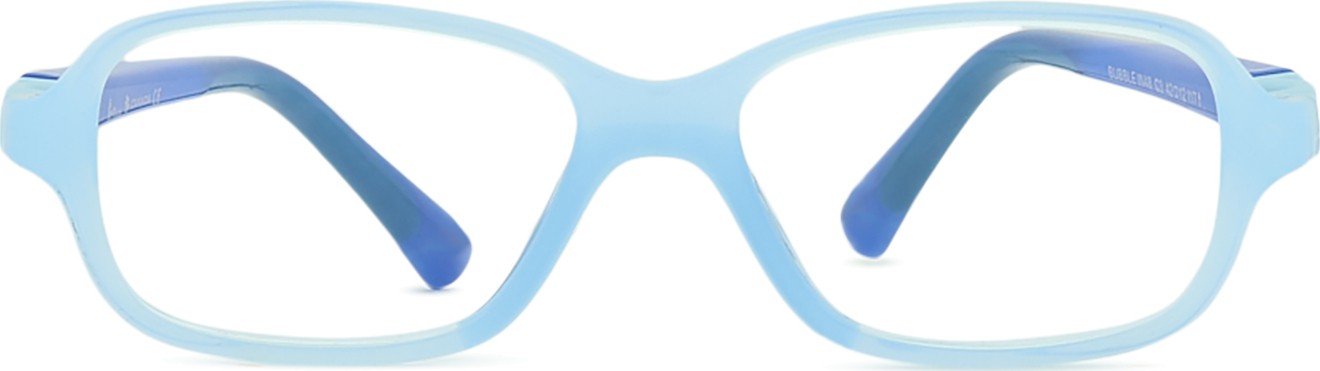 A cor azul da armação combina perfeitamente com um tom de pele claro e um cabelo castanho claro, preto ou loiro claro.
