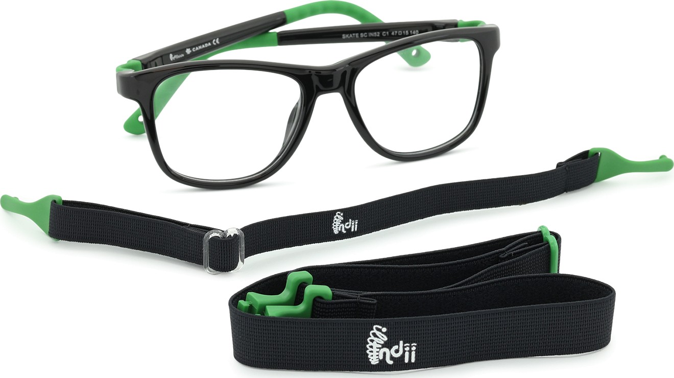 O modelo Skate IN possui duas correias têxteis ajustáveis que ajudarão a eliminar o risco de perda dos óculos e garantirão uma melhor fixação na cabeça durante as diversas atividades das crianças.