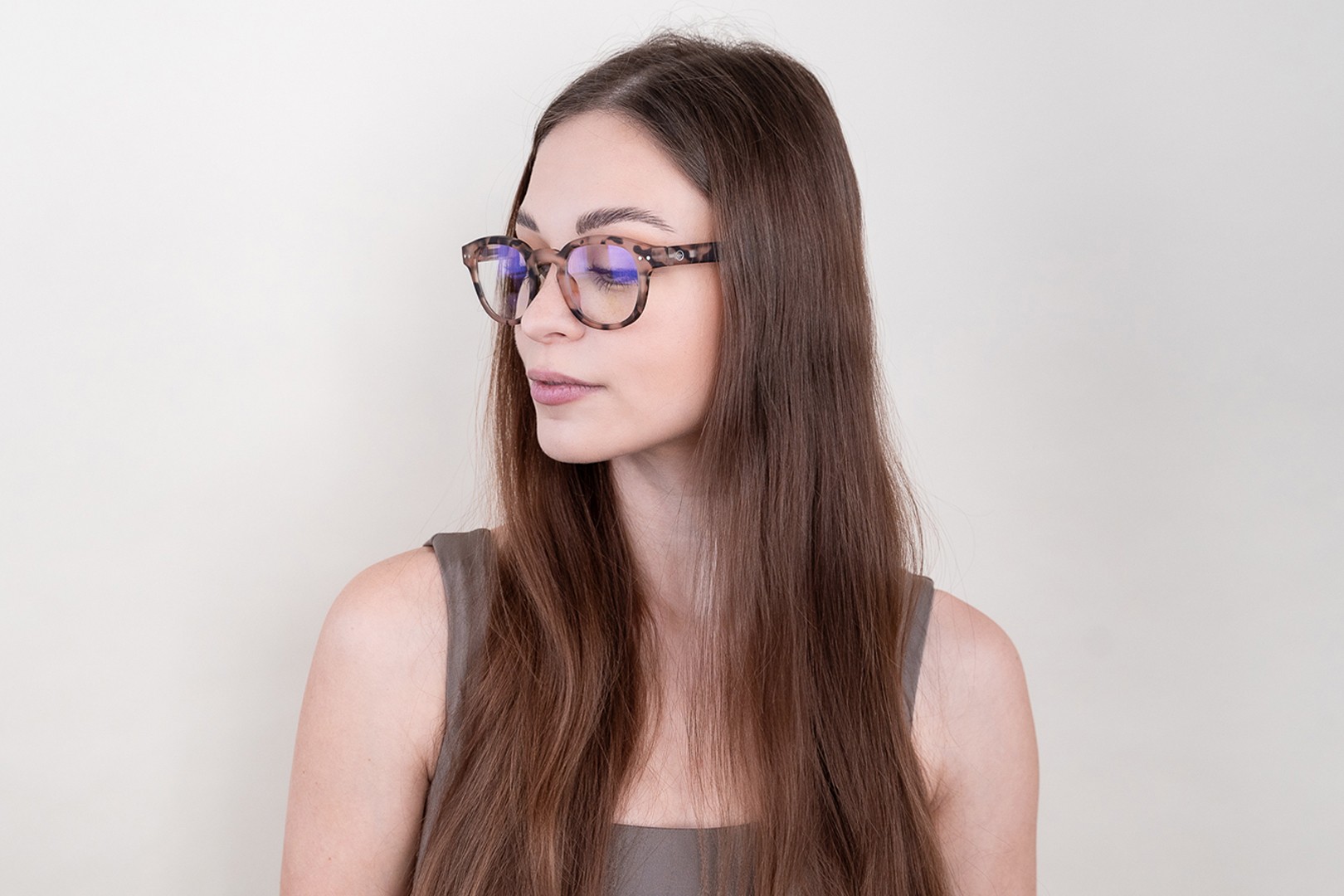 - A cor castanha da armação combina perfeitamente com um tom de pele escuro e um cabelo castanho claro, preto ou loiro escuro.