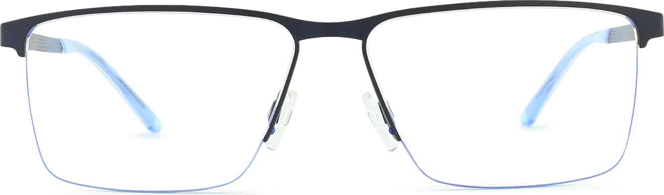- A cor azul da armação combina perfeitamente com um tom de pele claro e um cabelo castanho claro, preto ou loiro claro.