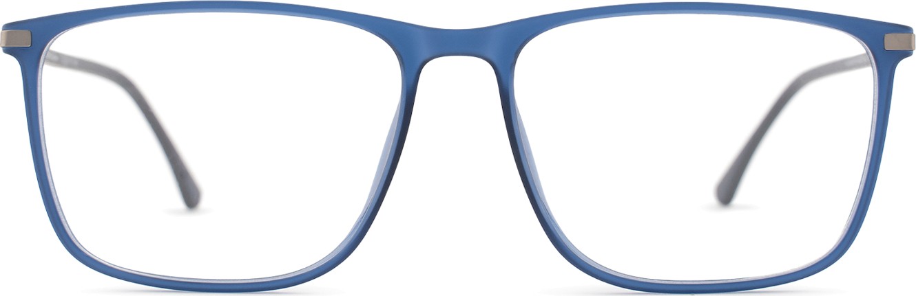 - A cor azul da armação combina perfeitamente com um tom de pele claro e um cabelo castanho claro, preto ou loiro claro.