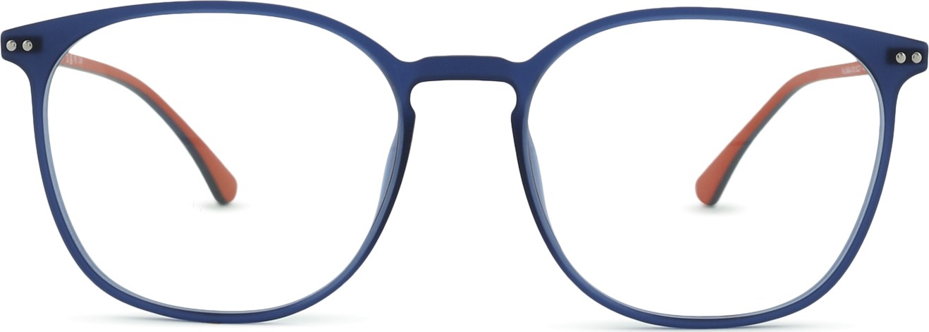 - A cor azul da armação combina perfeitamente com um tom de pele claro e um cabelo castanho claro, preto ou loiro claro.