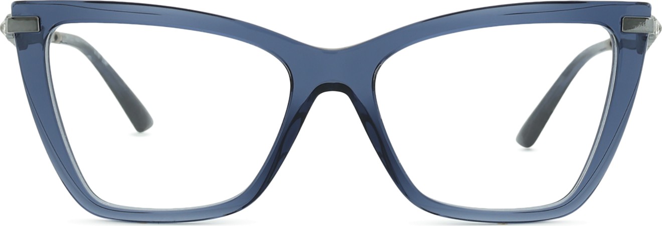 - A cor azul da armação combina perfeitamente com um tom de pele claro e um cabelo castanho claro, preto ou loiro claro.