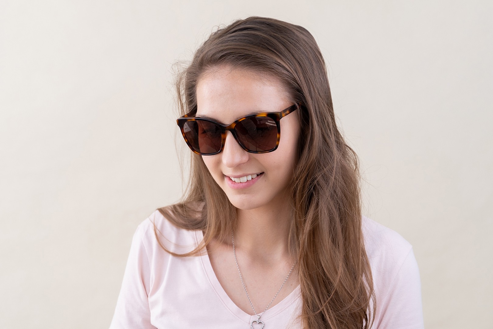 - A cor castanha da armação combina perfeitamente com um tom de pele quente e um cabelo castanho claro, preto ou loiro escuro.