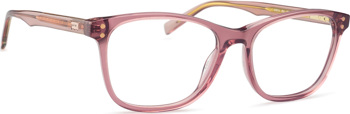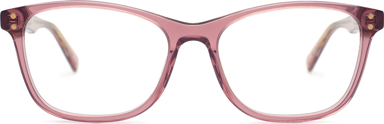 - A cor rosa da armação combina perfeitamente com um tom de pele claro e um cabelo castanho ou loiro claro.