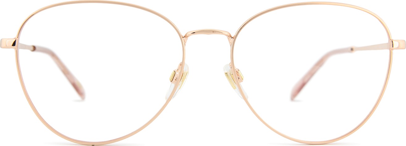 - A cor rosa da armação combina perfeitamente com um tom de pele claro e um cabelo castanho ou loiro claro.