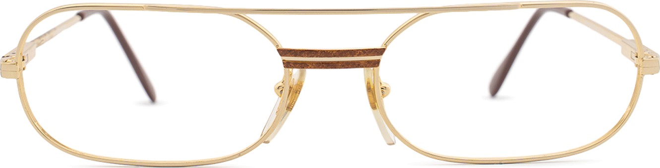 - A cor dourada da armação combina perfeitamente com um tom de pele escuro e um cabelo castanho escuro.