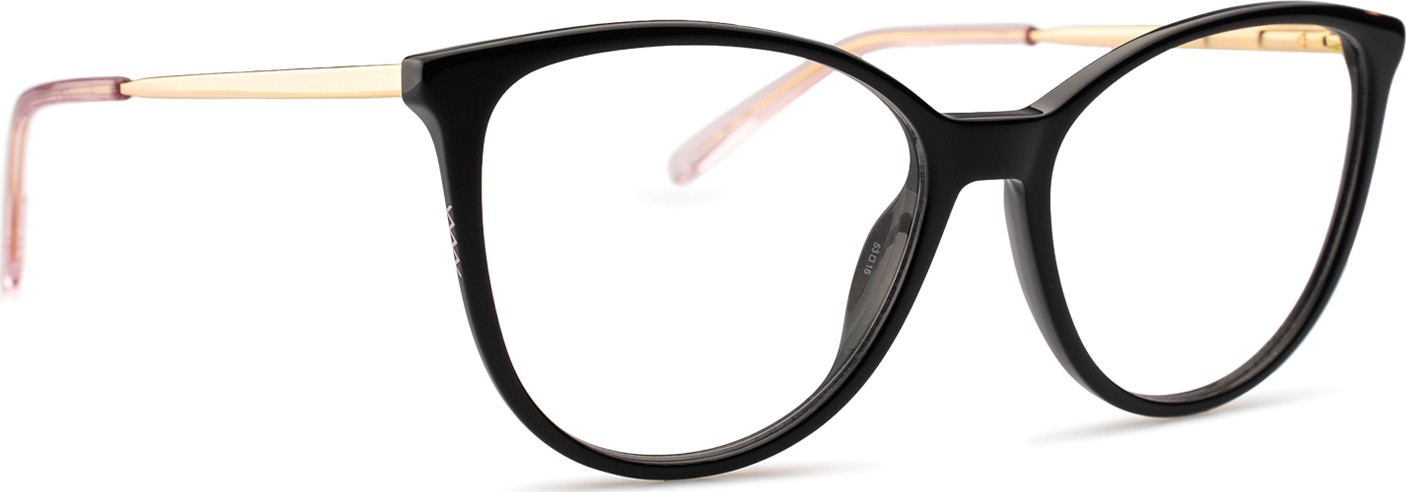 - A cor preta da armação combina perfeitamente com um tom de pele claro e um cabelo loiro claro, castanho claro ou preto.