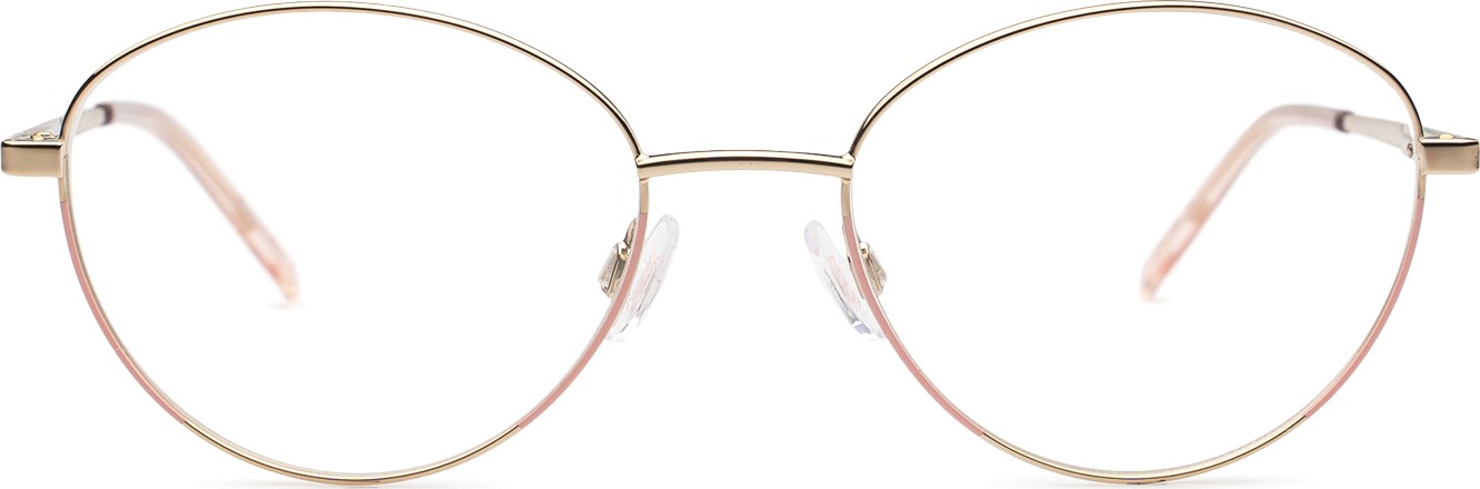 - A cor rosa da armação combina perfeitamente com um tom de pele claro e um cabelo castanho ou loiro claro.