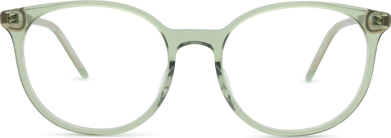 - A cor verde da armação combina perfeitamente com um tom de pele claro e um cabelo castanho escuro, preto ou ruivo.