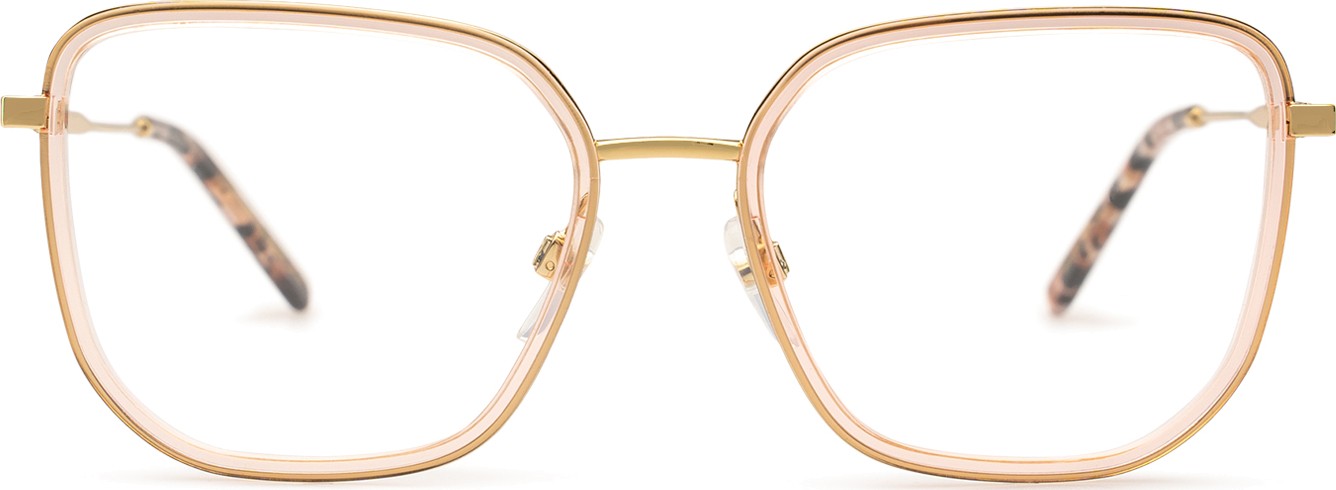 - A cor rosa da armação combina perfeitamente com um tom de pele claro e um cabelo castanho ou loiro claro.