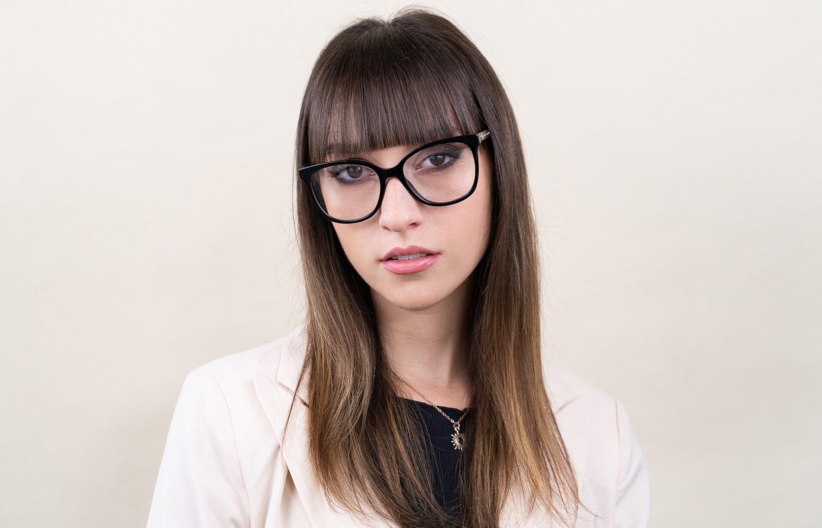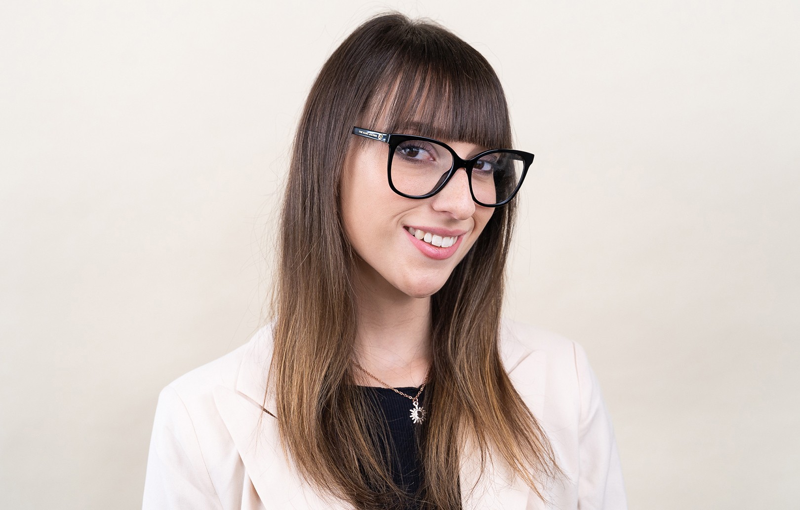 - A cor preta da armação combina perfeitamente com um tom de pele claro e um cabelo loiro claro, castanho claro ou preto.