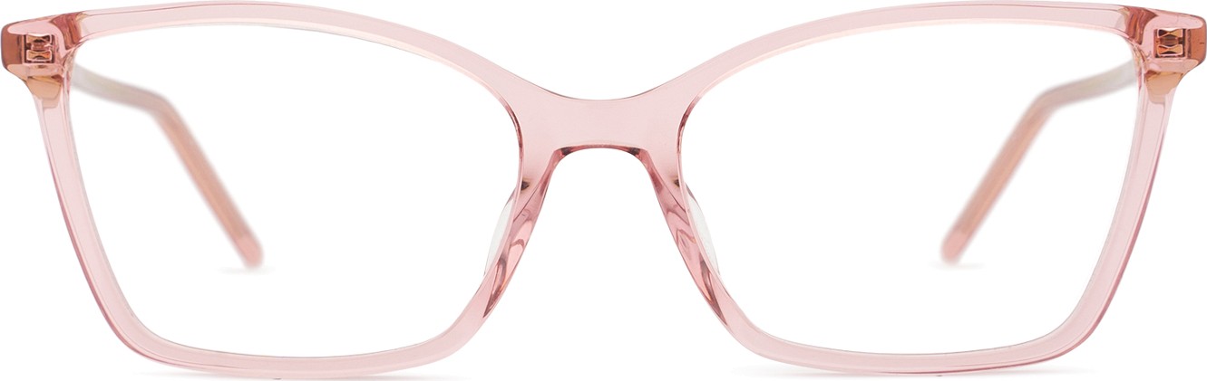 - A cor rosa da armação combina perfeitamente com um tom de pele claro e um cabelo castanho ou loiro claro.