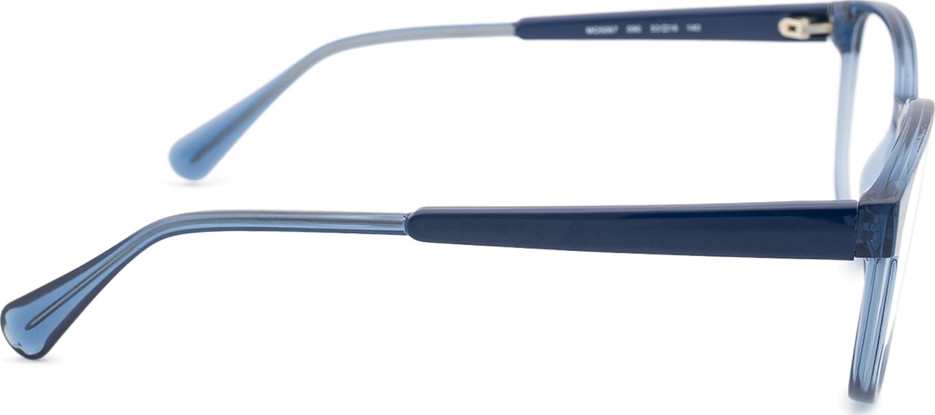- A cor azul da armação combina perfeitamente com um tom de pele claro e um cabelo castanho claro, preto ou loiro claro.