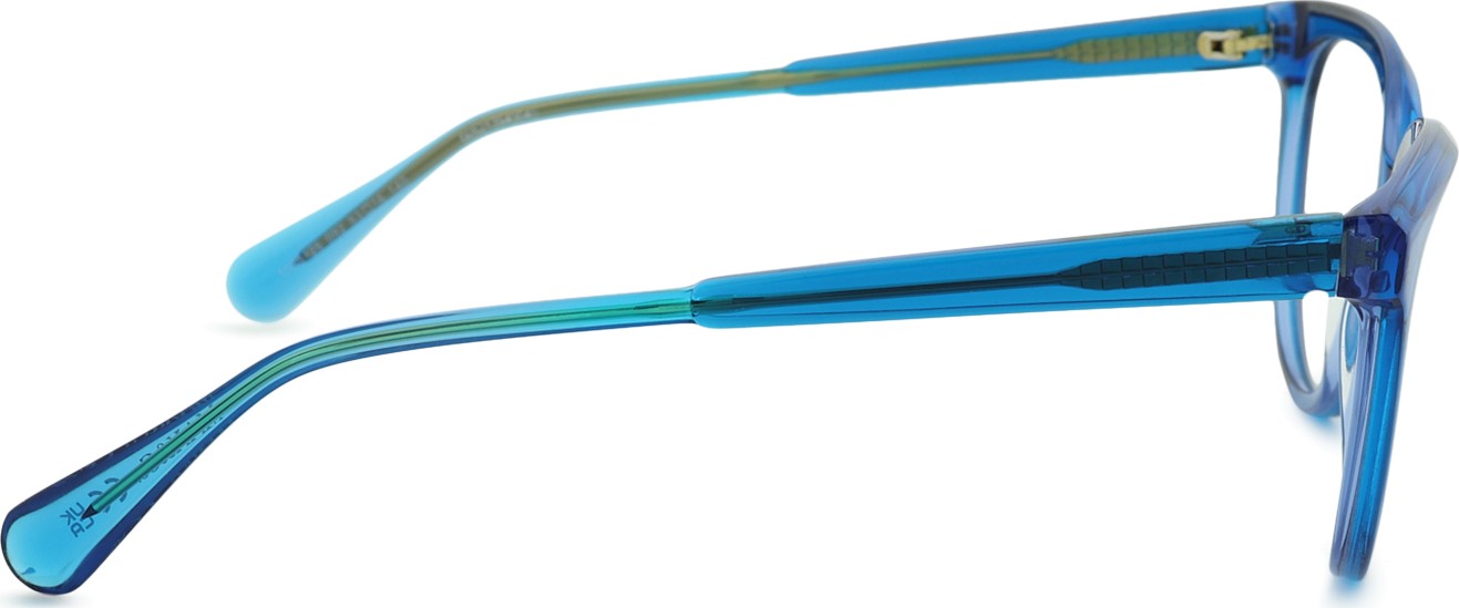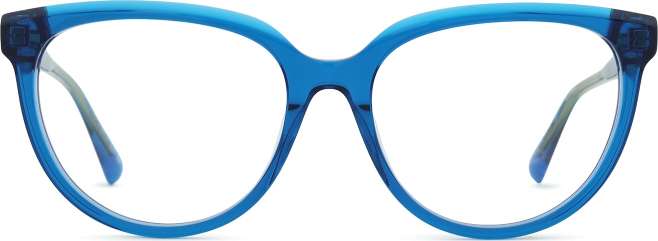 - A cor azul da armação combina perfeitamente com um tom de pele claro e um cabelo castanho claro, preto ou loiro claro.