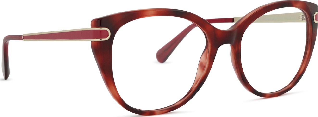 - A cor vermelha da armação combina perfeitamente com os tons escuros de pele e o cabelo preto, castanho escuro, branco ou cinzento.