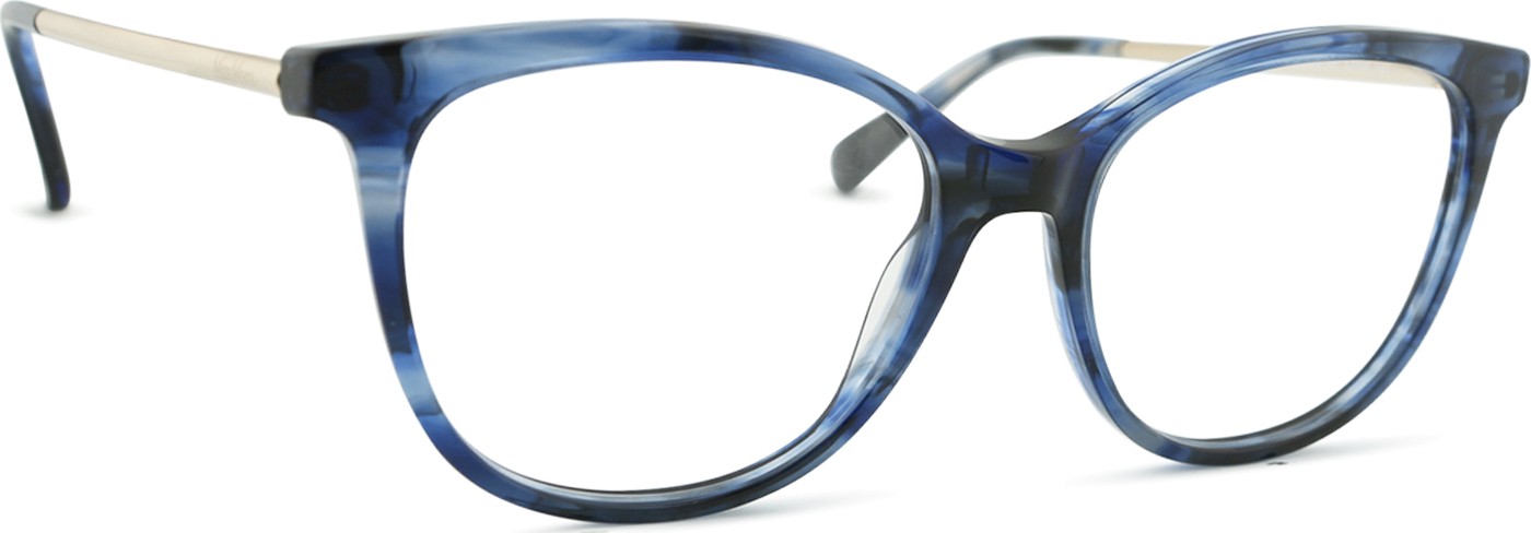 - A cor azul da armação combina perfeitamente com um tom de pele claro e um cabelo castanho claro, preto ou loiro claro.