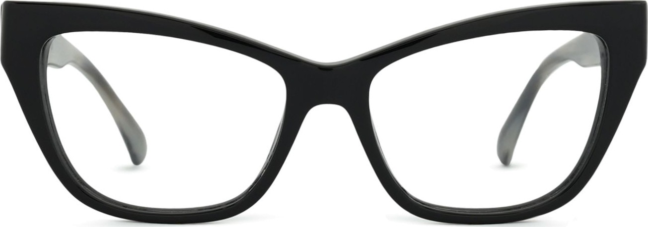 - A cor preta da armação combina perfeitamente com um tom de pele claro e um cabelo loiro claro, castanho claro ou preto.
