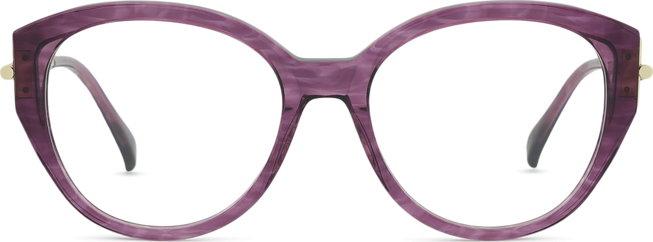 • A cor púrpura da armação combina perfeitamente com um tom de pele claro e um cabelo preto, cinzento, branco ou loiro claro.